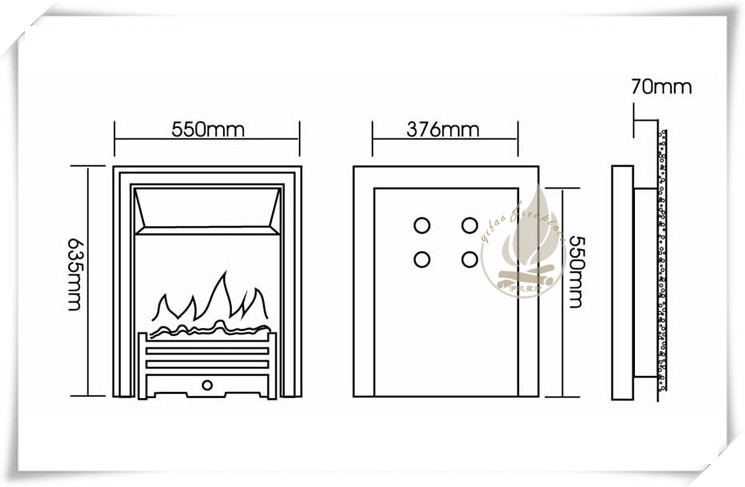 標(biāo)準(zhǔn)配置/standard layout | 電壁爐加厚冷軋鋼板/專用LED光源/加厚鋼化玻璃面/高仿真立體陶瓷纖維木柴炭火床/專用光學(xué)反射幕布 |